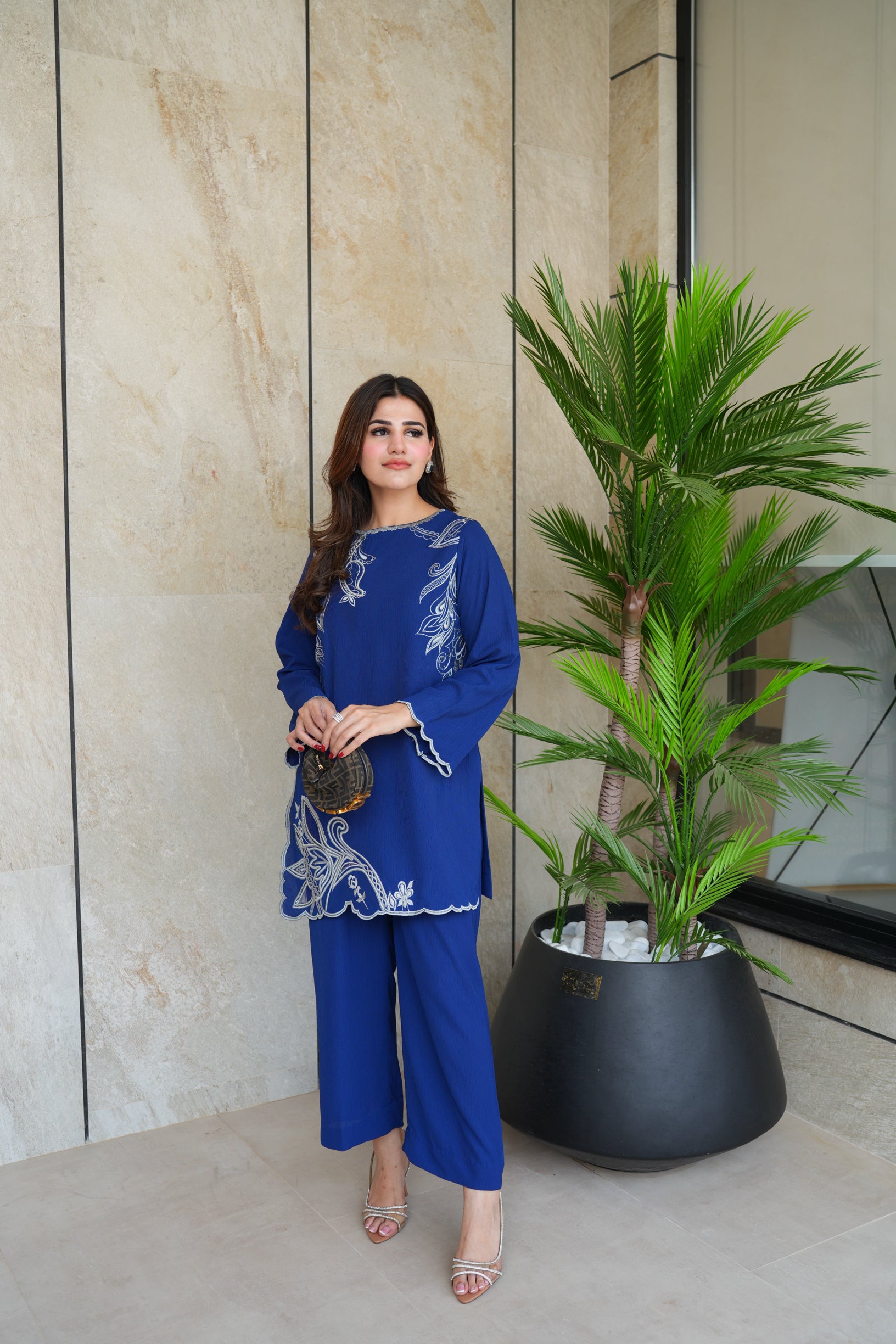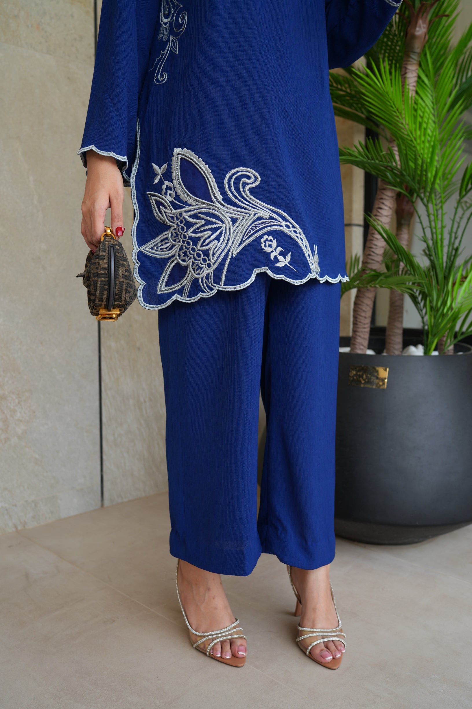 Radiate elegance with Azure Grace — a royal blue ensemble that beautifully blends sophistication and charm. Crafted from luxurious fabric and adorned with intricate embroidery and scalloped detailing, this outfit is perfect for festive gatherings or chic daytime events. Pair it with statement heels and a sleek clutch for a look that’s effortlessly graceful and timeless. 💙✨